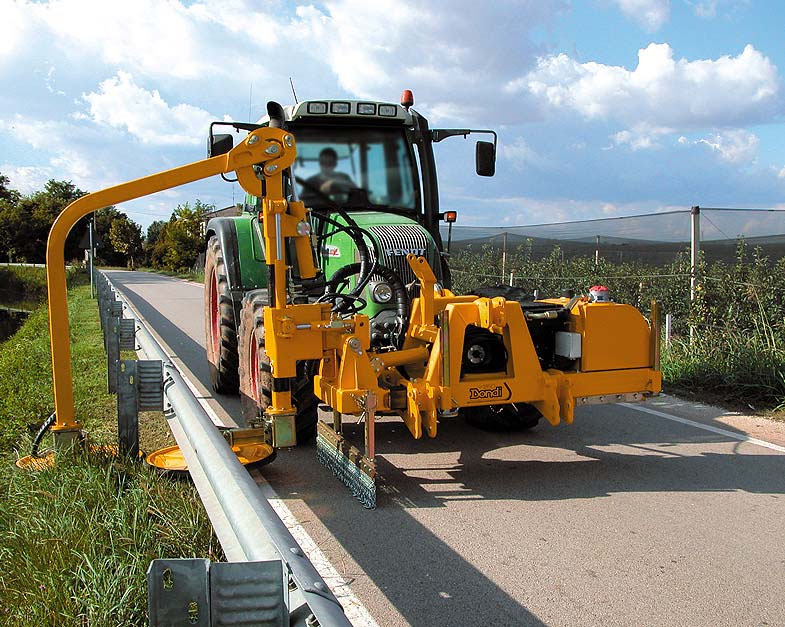 Ứng dụng: Cắt cỏ hoang và cây bụi rậm xung quanh lan can hộ lan đường cao tốc, quốc lộ . …. Thủy lực tự động gắn trên máy kéo, cần vươn thủy lực nhiều khúc. Tự động thu cần sau khi ngưng làm việc. Đầu cắt tự tránh hộ lan, cần co rút tránh cột bảng hiệu,.....